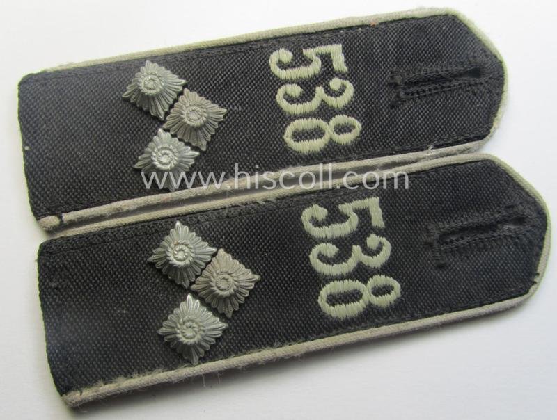 Very unusual - fully matching albeit clearly used! - white-piped, so-called: 'Reiter-HJ' (ie. 'HJ-Streifendienst') shoulderstrap-pair for an: 'HJ-Gefolgschaftsführer' who was attached to the (Austrian-based): 'Bann 538' (538 = 'Gmunden')
