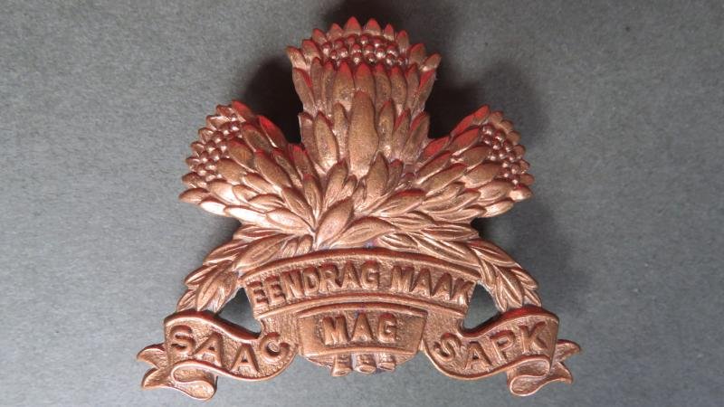 gilding metal badge in very good condition and number 1295 in Military Badges and Insignia of Southern Africa by Colin Owen