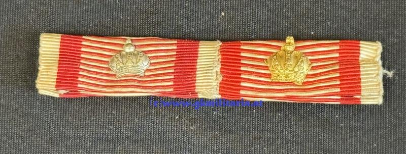 2-teilige Bandspange Silbene + Bronzene Signum Laudis!! - mit silberner und bronzener Auflage 'KRONE' am Band - sehr guter Zustand!