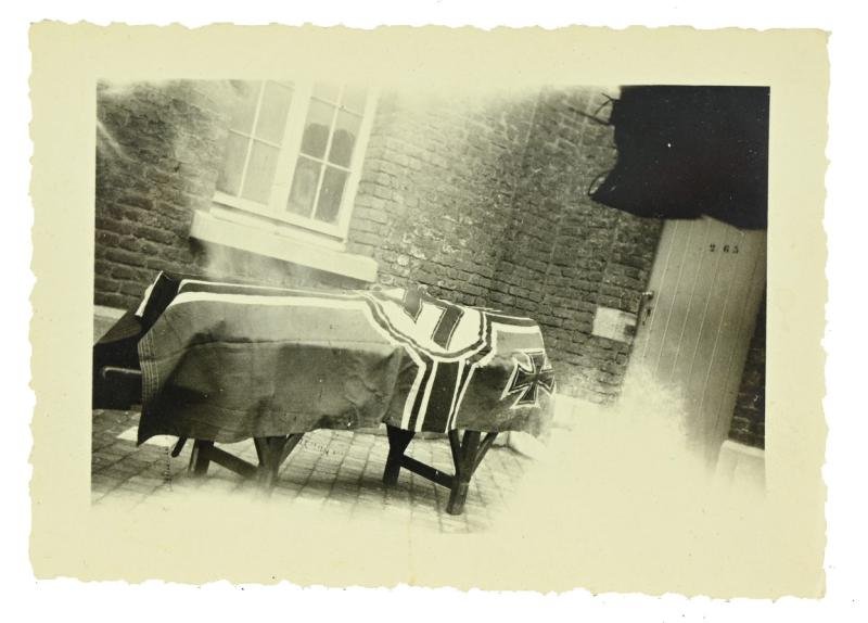 In a very nice condition a German Wehrmacht funeral picture of a coffin with flag over it.The picture comes in a size of 4x6cm approx.