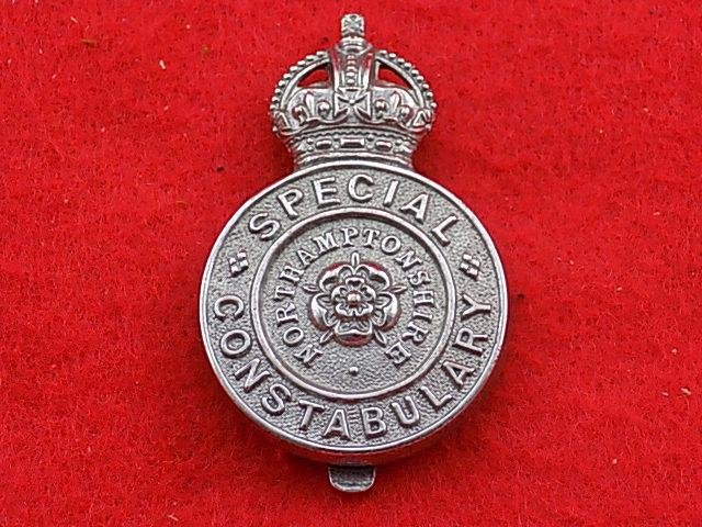 .Cap Badge - Northamptonshire Special Constabulary with Kings Crown made of white metal with slider fitting to rear, good condition