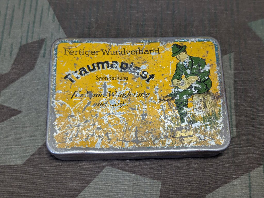 Traumaplast bandage tin. Sportpackung. For sport, hiking and travel. It is worn, but what is left of the graphics is pretty nice.