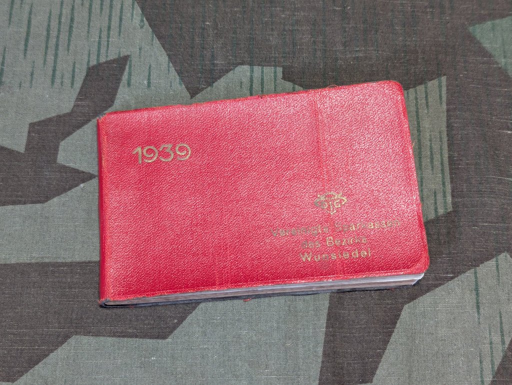 1939 Sparkasse bank Wunsiedel pocket calendar. A few pages are torn out in the front. Some writing, mostly when people's birthdays are. Lots of useful information in the back, NSDAP, SS, SA, NSKK, Wehrmacht, Kriegsmarine, Luftwaffe, Polizei and Reichs-Arbeitsdienst ranks and symbols, first aid tips, zodiac, postage prices, license plate meanings, street signs, etc. There is a slight crease in the cover.