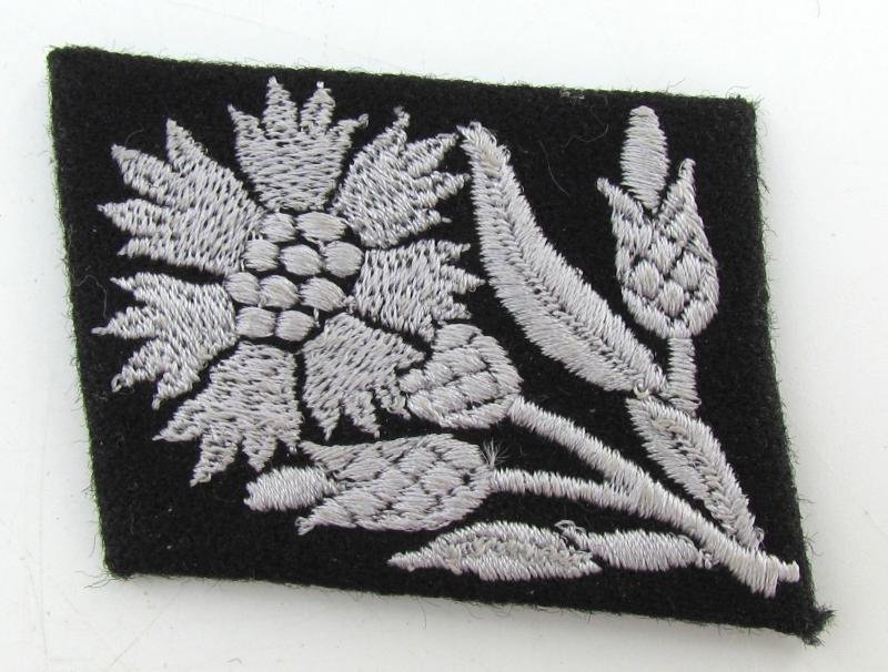 Waffen-SS Collar Tab (Kragenspiegel) as intended for a member within the '22. SS-Freiwilligen-Kavallerie-Division 'Maria Theresia' (Hungarian). The division was formed in april 1944 and was destroyed in the Hungarian capital Boedapest in February 1945.The collar-tab originates almost certainly from the SS clothing department at the Dachau KZ when liberated in 1945in a very good condition