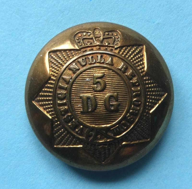 5th Dragoon Guards Officers Gilt Brass Large Pattern Button, QVC Crown