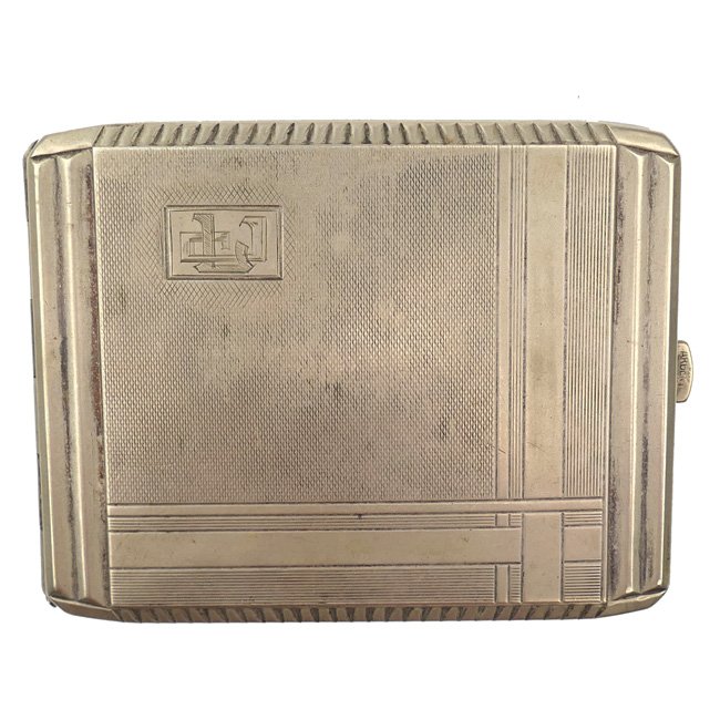 German Cigarettes Case. The World War 2 period cigarettes case is maker marked and 'Alpacca' material marked. The case is showing engraved initials. Nice original period item to add to a personal kit!