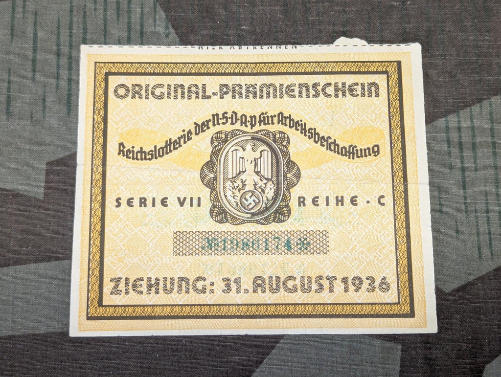 Original Reichslotterie August 1936 Lottery Ticket