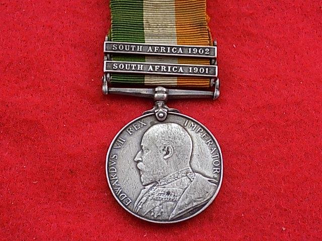.Kings South Africa Medal with South Africa 1901 & 1902 Bars to 3311 Gnr J W Frost RGA, tatty ribbon, otherwise good condition