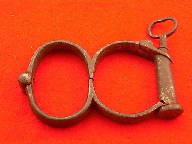 .Irish Eight Handcuffs with key, in good working order, no markings, good condition