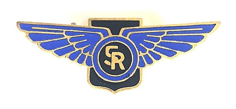 A rare original circa 1940's 'Saunders Roe Limited' gilt pin badge inlaid with blue and black enamel, the reverse impressed with official issue number '334'. Very good condition, complete with original pin fittings, no stress or damage to the enamel, an excellent example.Width approx 34mm.Saunders-Roe Ltd, Columbine Works East Cowes, Isle of Wight.