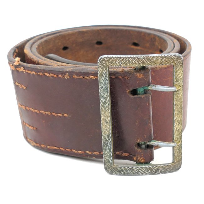 Political NSDAP Brown Belt & Open Claw Belt Buckle (Koppel und Zweidornschnalle). The open claw belt buckle was authorized for wear by almost all political and military organizations during the Third Reich. The 105cms long and 60mm wide brown leather belt is having a gold-coloured buckle (Zweidornschnalle) attached. The buckle is not visible maker marked. This belt could serve as a privately purchased type Wehrmacht or Luftwaffe General's belt as well. Nice original Political leather belt in good used condition!