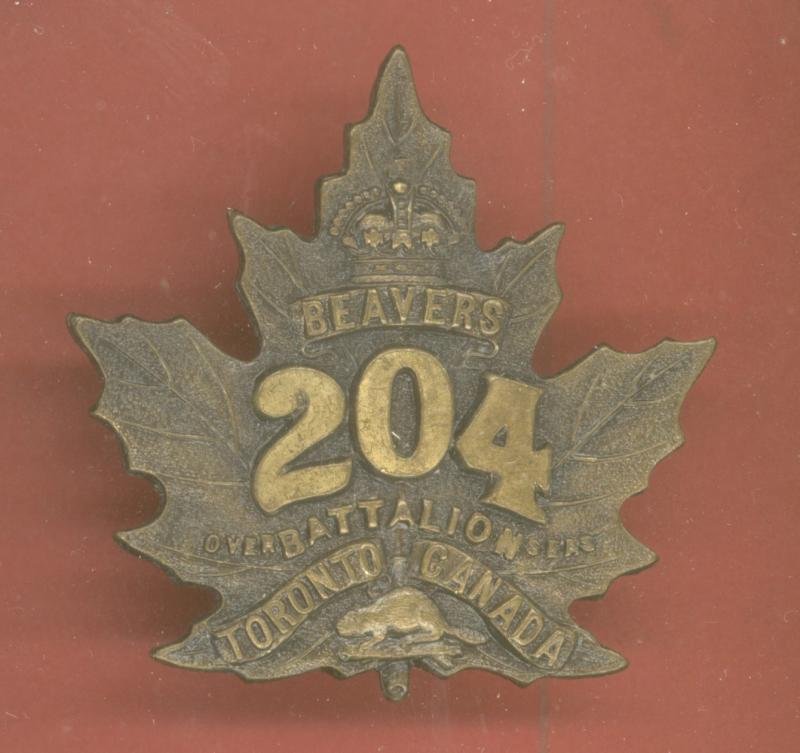 Canadian 204th Toronto Beavers Bn. WW1 CEF cap badge
