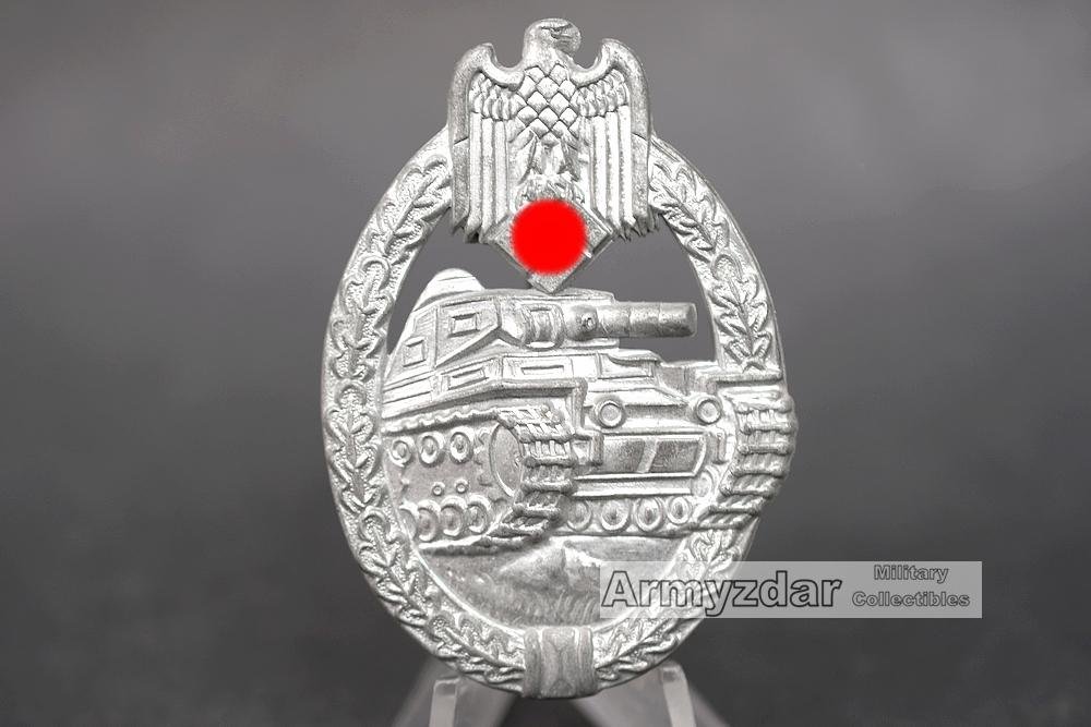 This is a nice unissued German panzer badge with original silver finish. This is type so called Flatback.Material: zincMaker: unknown