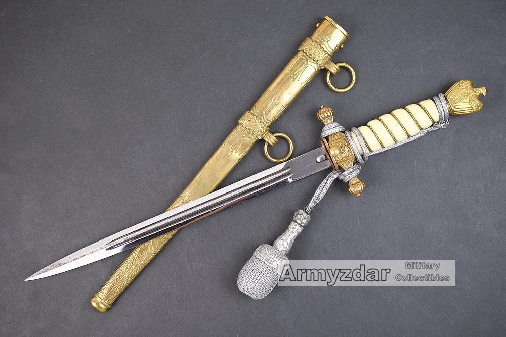 his is a very nice untouched Kriegsmarine dagger with original knot. The blade is maker marked WKC in perfect condition. The knot is original mounted on the handle.