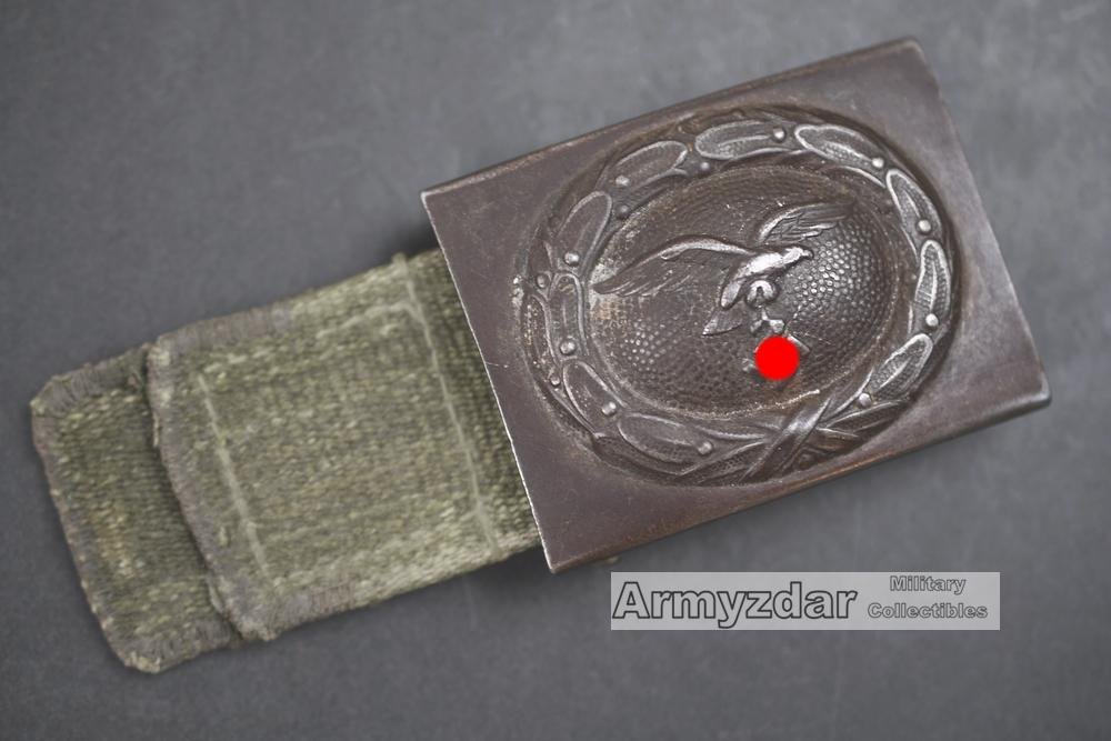 This is a super rare German Luftwaffe tropical belt buckle with webbing tab. The buckle is in a good used condition with a nice untouched patina.