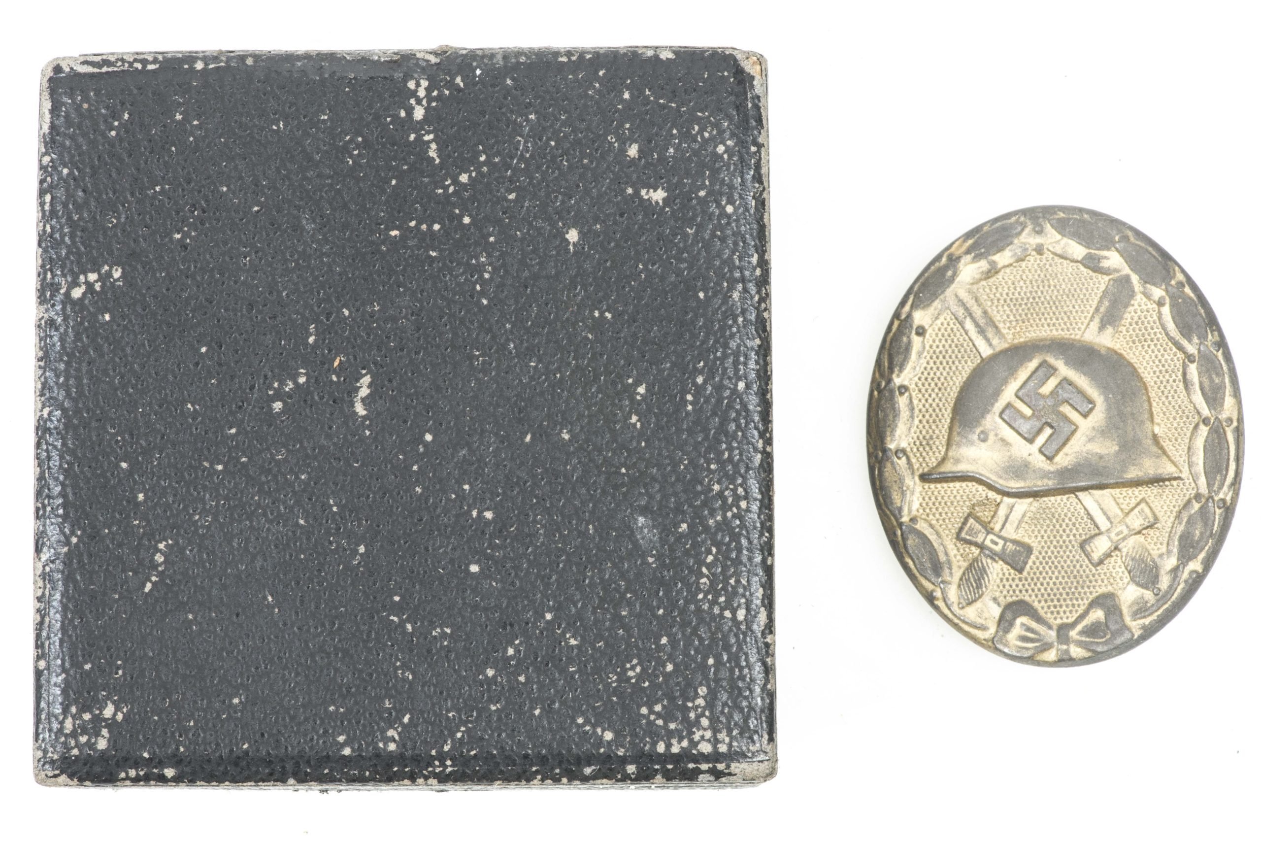 Gold wound badge marked 4 with case marked Hauptmünzamt Wien. The badge is marked 4 indicating production by Steinhauer & Luck. The case was found with the badge and is in equal good condition.