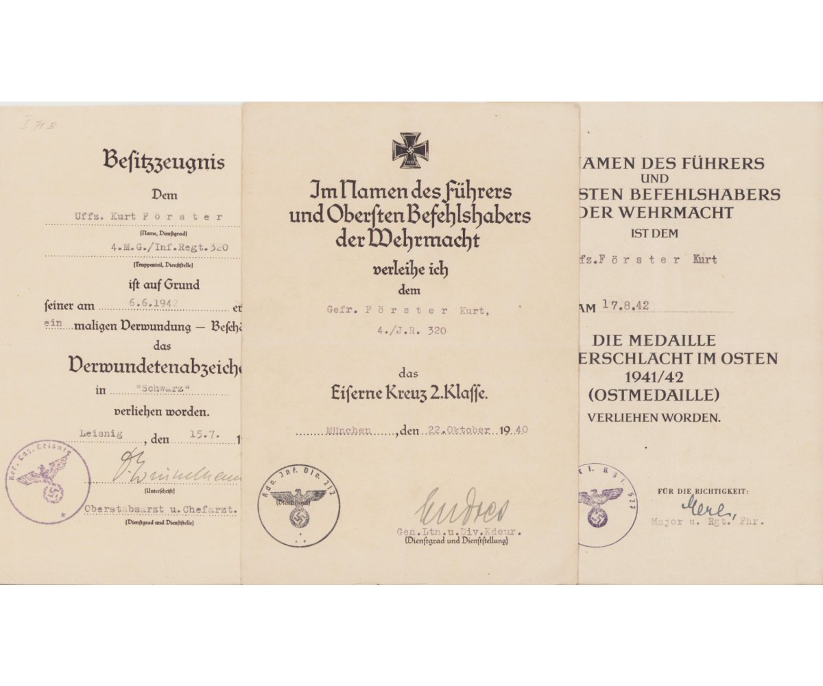3-Piece 4.M.G./Inf.Rgt.320 Award Document Grouping