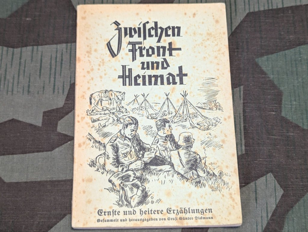 Original Zwischen Front und Heimat 1942 book. It is a collection of true stories from the front and back home. There are some illustrations. OK condition with some staining, fading and general wear.