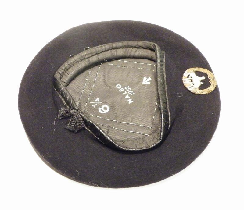 Black wool beret by Malbo dated 1952 with its original South Wales Borderers Bi-metal badge. Genuine military issue and in very good condition, size 6 & 1/4,.