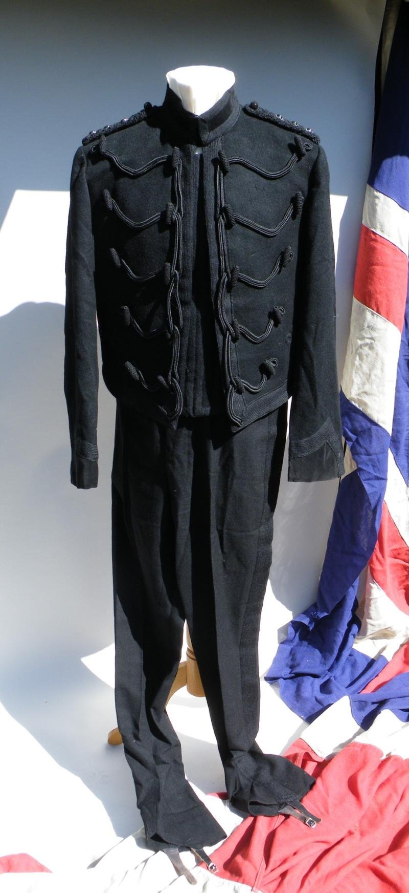 Pre 1958 Officers mess dress for a Captain of the Kings Royal Rifle Corps. A beautiful quality uniform, the jacket made from black wool with silk cords and black velvet embellishments. It has a quilted silk lining and comes with matching trousers with black ribbon stripe and matching waistcoat.The condition is superb, no sign of any moth damage, there is what looks like a white line on one arm, please see pictures but on the whole, it looks hardly used.Jacket; 40-inch chest and 18 inches across the shoulders.Trousers; 38-inch waist, 35 inch inside leg.One piece waistcoat with metal zip fastening to back and side. 40 inch chest.