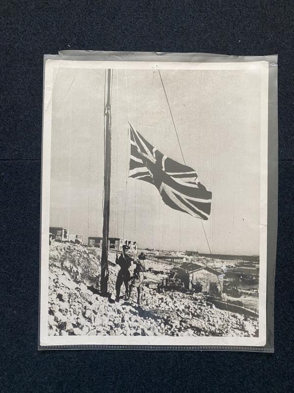 This is a picture of British troops raising the British flag. Approx. 26cm x 20cm.