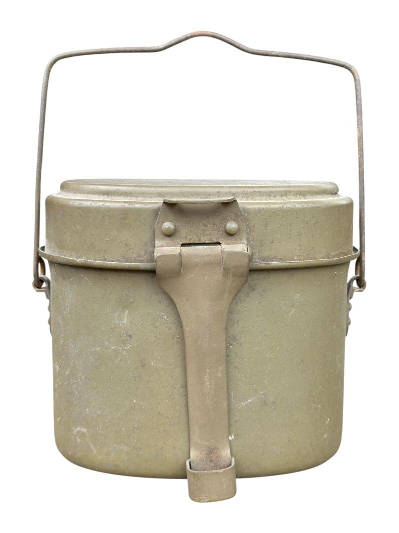 Perfect aluminum Messkit which retaining more then 95% of it's original green paint, nicely factory code marked 'MKL' (Max Kamper, Lüdenscheid) and dated 1944.