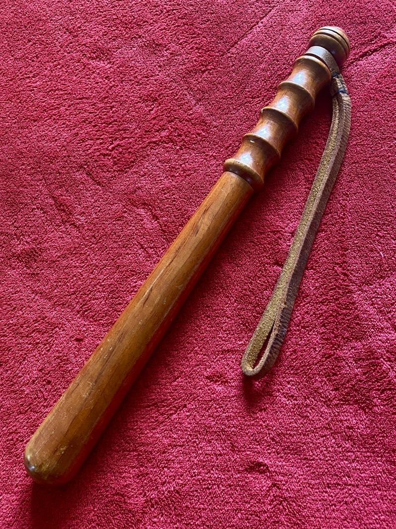 Antique British Police Hickory Truncheon with Original Leather Wrist Strap Marked HIATT c1920