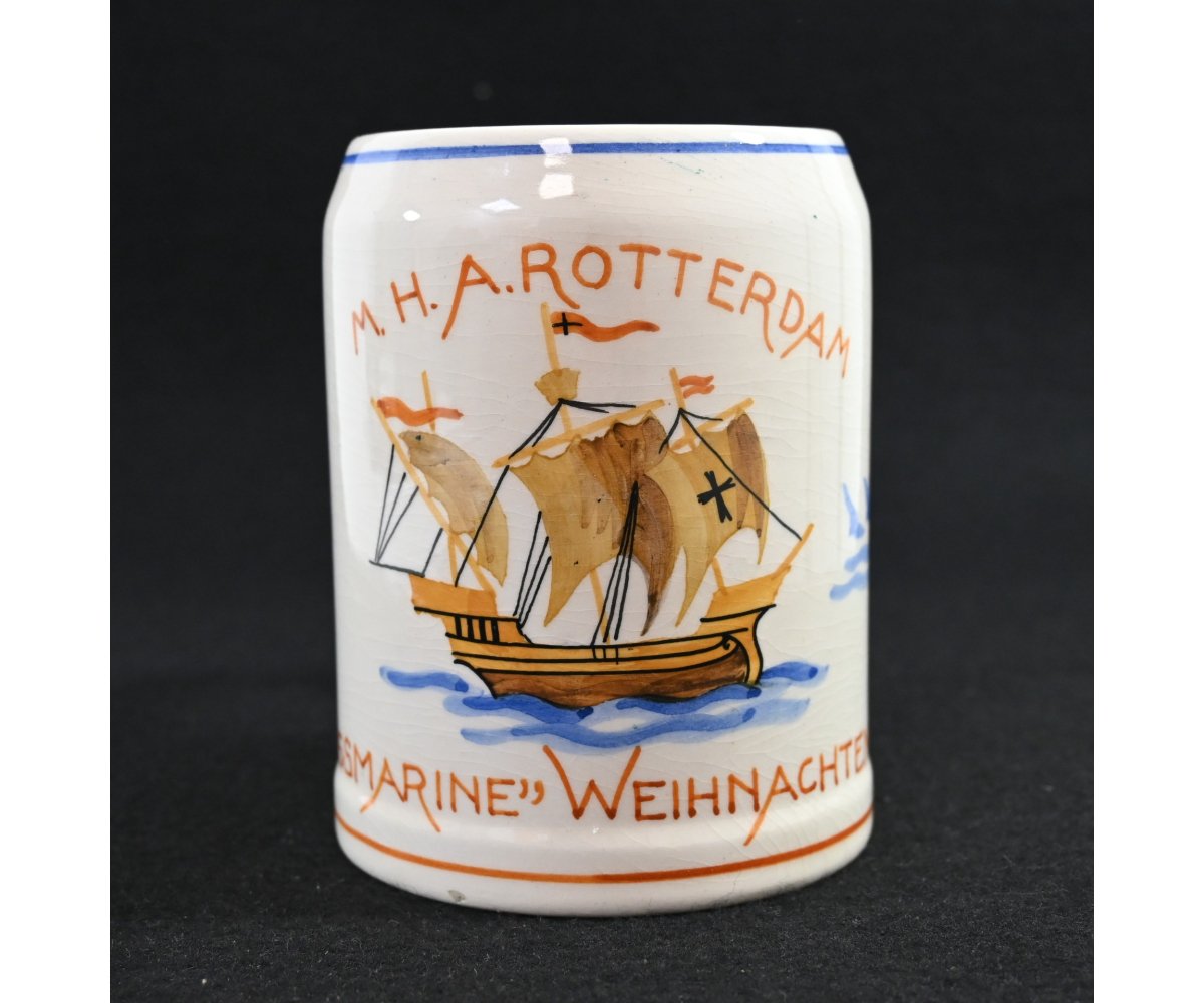 Very nice and hard to encounter Kriegsmarine Rotterdam related christmas beer stein in used, but very good condition.