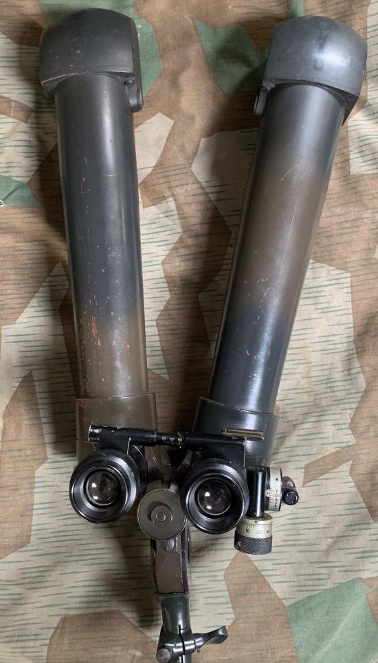 Excellent original condition SF14z periscope binoculars with exceptional dark grey paint with strong brown camouflaged paint dating this set to 1939/40. Excellent optical condition