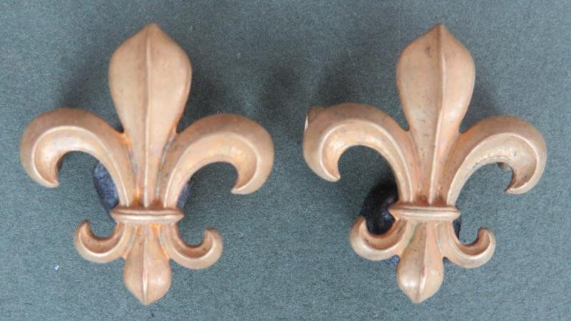 gilt metal collar badges in near mint condition and number 1523 in Colin Churchill Army Infantry Collar Badges. Stamped J R GAUNT LONDON