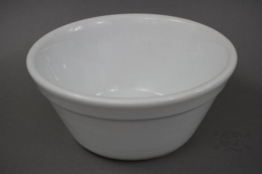 Original German WWII RAD Large Porcelain Bowl - Hutschenreuther Selb 1938This is an original Reichsarbeitsdienst (RAD - Reich Labor Service) porcelain mess hall bowl, manufactured byHutschenreuther Selb of Bavaria. The underside is clearly marked with the Hutschenreuther lion and dated 1938. The bowl measures approximately 21cm in diameter and 9.5cm in height. It retains its original white glaze and remains in very good condition for its age.