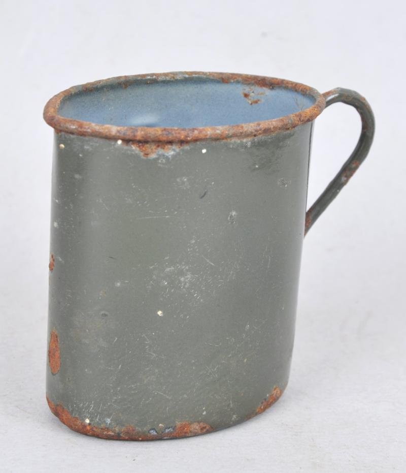Green enamelled drinking cup as issued to the German soldier in WW1.marked to bottom 'Wuppertal 17' .