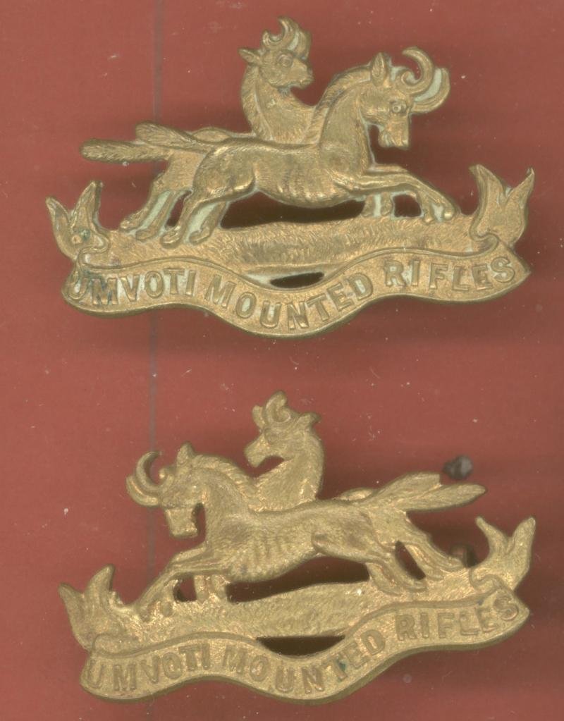 A good scarce die stamped brass facing pair of collar badges. Two loops to the reverse of each collar. Owen 450