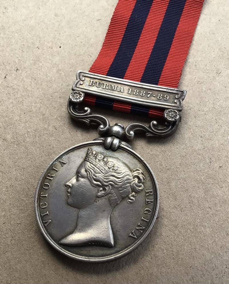 Clasp 'Burma 1887-89'. Engraved in running script (2470 Private J Higgs 2nd Bn R Muns FUS).Original full size medal.