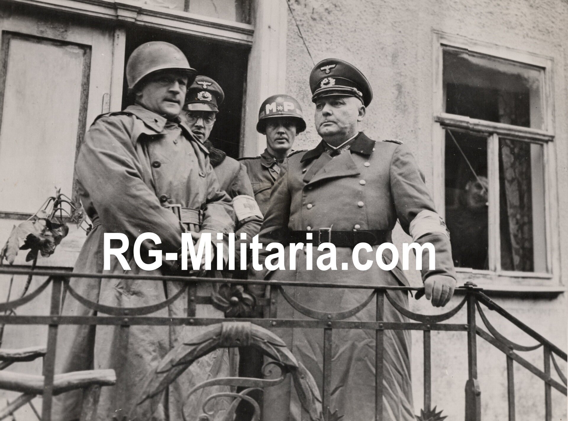 Original WW2 German Press Photo - Lieutenant General Alexander Remust surrenders to the US 87th Division (1945)Approximately 23 x 18 cmOriginele Wo2 Duitse Persfoto - Luitenant-generaal Alexander Remust geeft zich over aan de Amerikaanse 87e Divisie (1945)Ongeveer 23 x 18 cm