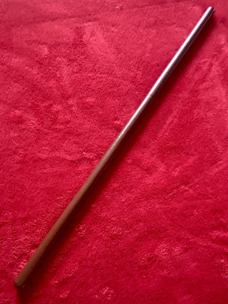 Here on offer is a fine vintage British officer's brown leather covered swagger stick.It is devoid of any maker's marks but the leather is stamped with:MADE IN ENGLANDThe fine English leather covering has an impressed 'pinhead' pattern, all over. I think this is to assist with gripping the stick. It is in excellent condition retaining all of its original stitching.It measures 24' (61cm) long and is about 0.7' (1.8cm) diameter.It weighs 100g.Please see my pictures for the details of the condition, which complement this description.Please see my TERMS OF BUSINESS regarding Deliver Charges and Insurance regarding additional insurance cover, should you require it, BEFORE the item is dispatched.The responsibility lies with the customer to check with your Customs restrictions that this item can be imported into your country.
