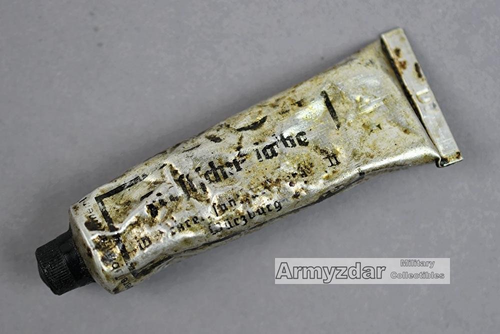 This is an original german WW2 Frostschutzsalbe in aluminium tube. The tube is hard used as you can see on pictures.