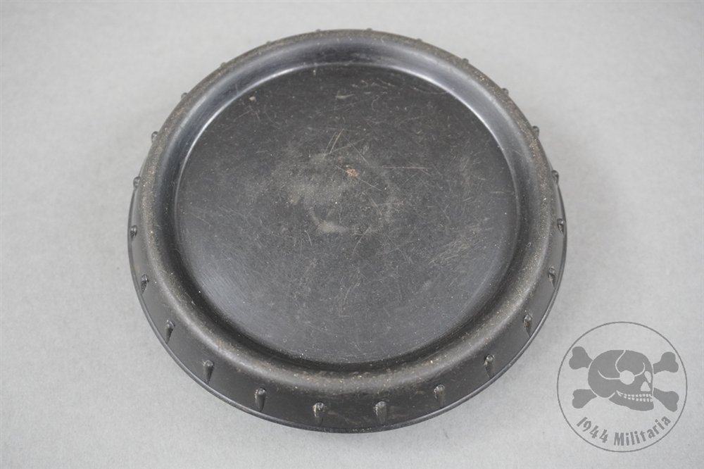 Original German WWII Black Butterdish (Butterdose)-Authentic German WWII black bakelite butterdish, featuring thefine threaded designthat opens with a simple quarter-turn. Both the lid and base aremanufacturer marked,ensuring a fully matching set. These wartime issued butterdishes are increasingly hard to find, especially in matching condition.This example shows light use with some minor scratches from use, but remains invery good to excellent condition, making it a desirable addition to any WWII field gear collection.