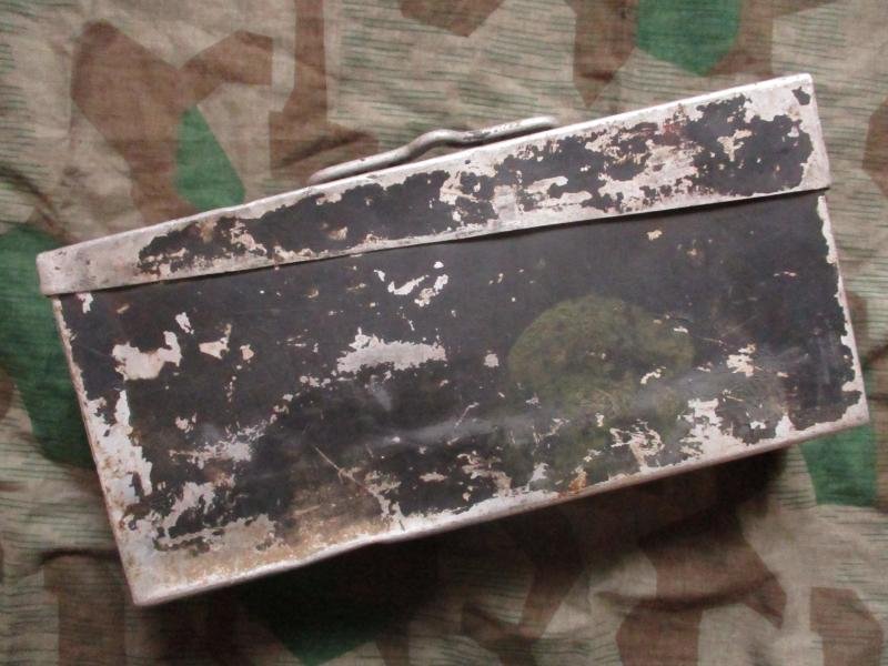 100% GENUINE ORIGINAL GERMAN WW2 GERMAN ARMY / WSS ELITE TROOPS / LUFTWAFFE FALLSCHIRMJAGER / GROUND DIVISION ISSUE MG34/42 AMM0 TIN .I THINK LATE WAR ONE AS NO MAKER CODS OR DATES ON ITCONDITION =. VINTAGE ORIGINAL WW2 . A TOTALLY ORIGINAL CAN ALL ORIGINAL GREY PAINT , UNTOUCHED JUST AS FOUND NOT EVEN BEN CLEANED UP . PICTURES SAY IT ALL