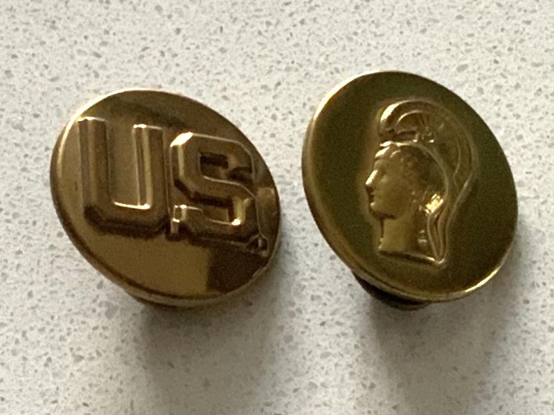 Here we have a pair of WAC Enlisted collar insignia. Clutch back fittings with age and service wear. Hollow stamping.