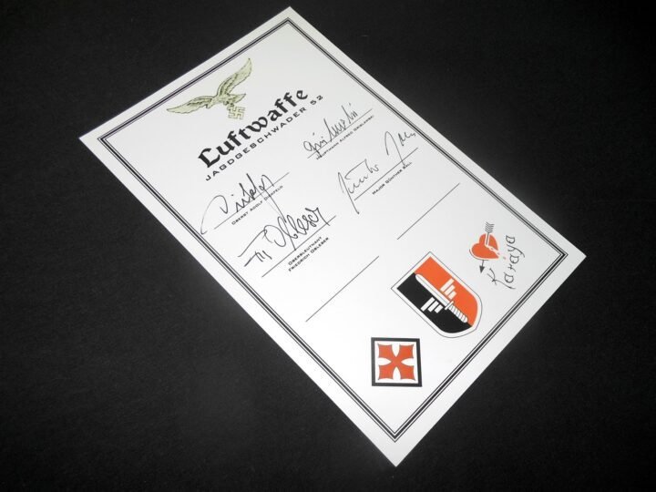 WW2 German Luftwaffe β FIGHTER PILOT AUTOGRAPHS x4 GROUPING CARD β JG52 β NICE!