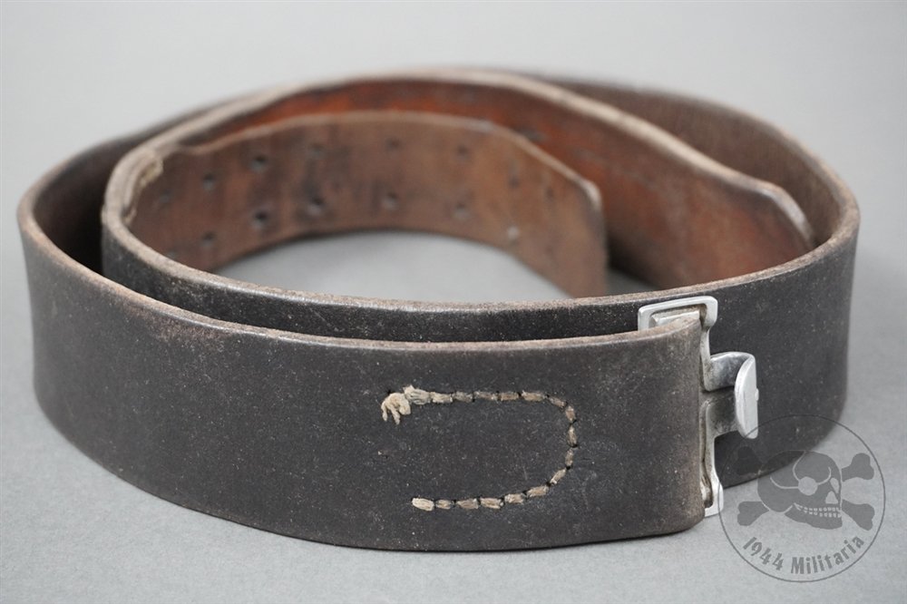 Original German Pre-War Leather Combat Belt Size 95cmAn authentic pre-war German combat belt, standard issue for enlisted men and NCOs. Constructed of quality leather, blackened on the exterior with a natural brown interior. The belt retains its original aluminum metal catch, designed for use with the standard two-prong buckle (Heer, Waffen SS, Luftwaffe, etc.).This example features the characteristic 'hidden stitching' that distinguishes pre-war manufacture from later wartime belts. Size marked 95 cm (fits approx. 36–37 inches). The leather tab has been moved back and most likely period done. Leather remains in very nice, pliable condition. Overall in excellent condition and ideal addition for any WWII German field gear collection.