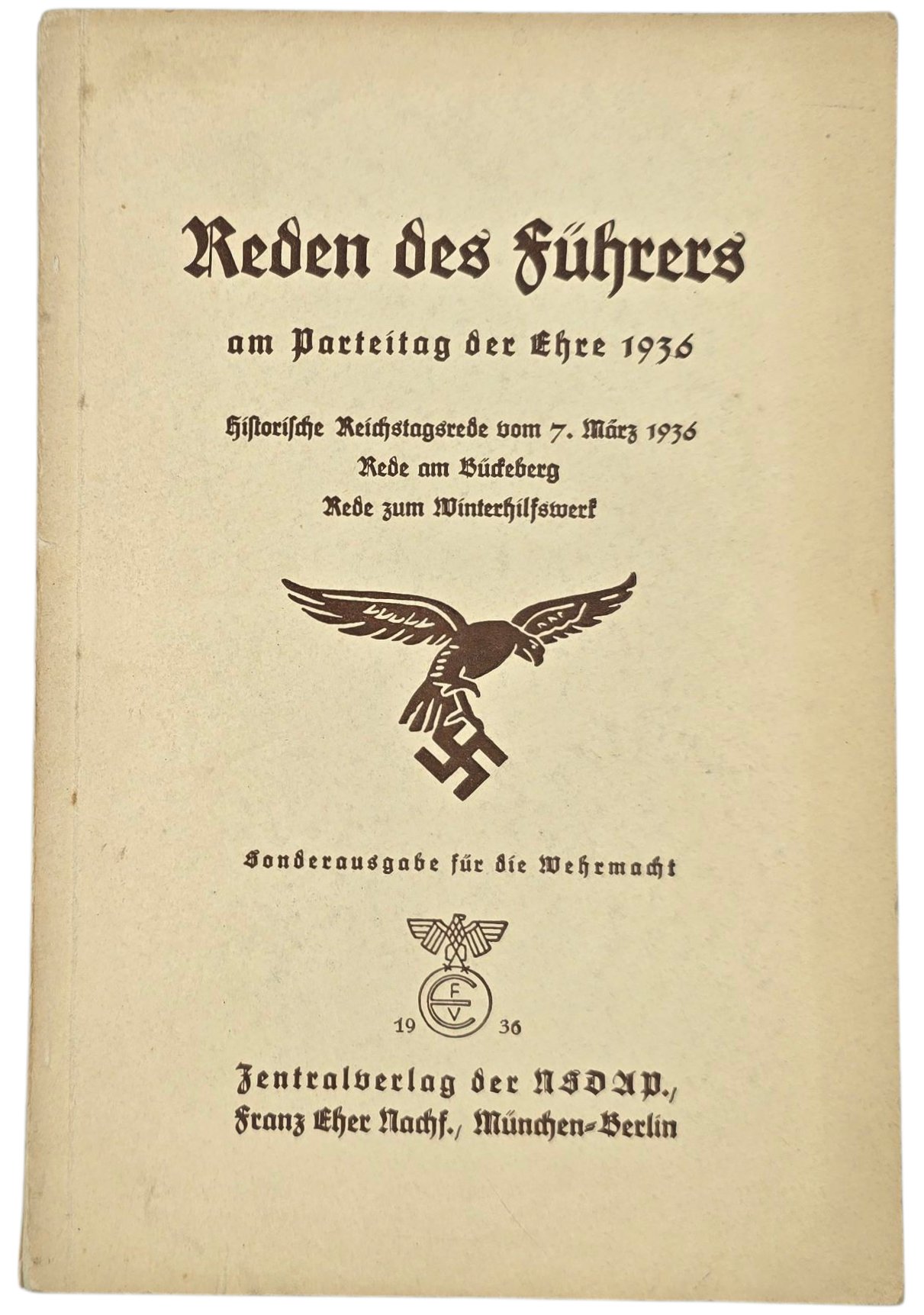 Original WW2 German NSDAP Brochure - Reden des FĂŒhrers am Parteitag der Ehre, Adolf Hitler (1936)