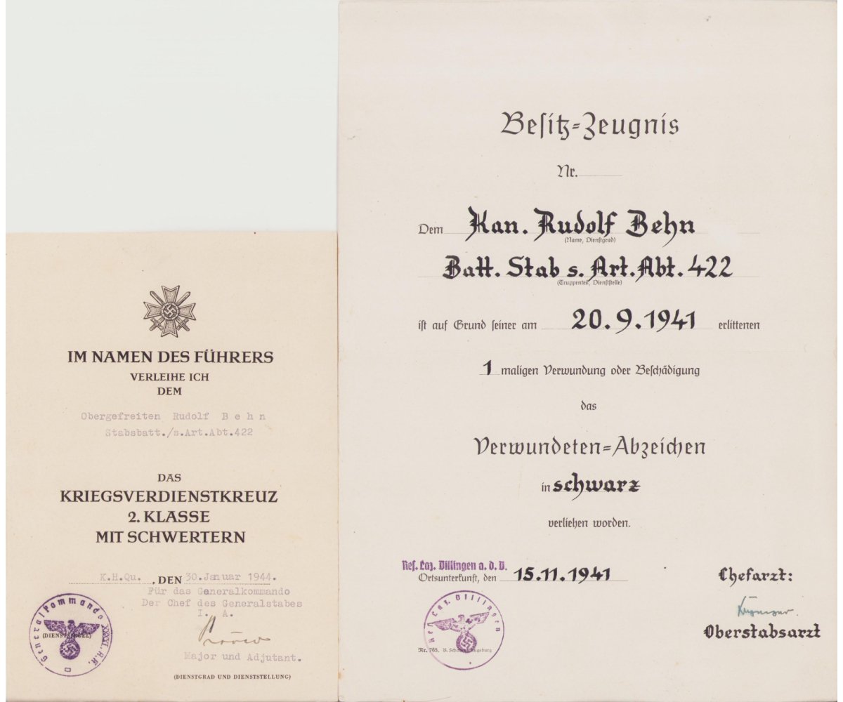 A nice 2-piece set of Wehrmacht Artillerie related award documents in good condition.