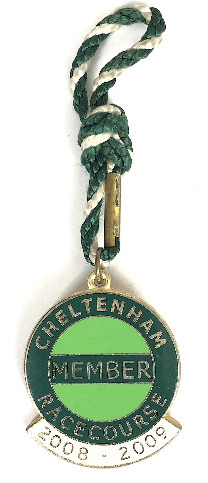 A good original gentleman member 'Cheltenham Racecourse 2008 -2009 horse racing club badge'; the reverse impressed with maker's details 'W.O.LEWIS (BADGES) LTD B.HAM B.19' and official issue number '2408'. Very good condition, complete with original cord and pin fittings, no damage to the enamel.