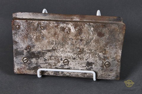 Armor Plate from ME 262-The Messerschmitt Me 262, nicknamed 'Schwalbe' (Swallow), was the world's first operational jet fighter, used by Nazi Germany during World War II. It featured twin Junker engines, swept wings, and a high top speed of 540 mph (870km/h), and was the newest technology of the war. This plane was a formidable enemy!This is a piece of steel that would sit behind the pilot's seat to protect him. This armor plate measures 10 ½ inches (26.67cm) long, and 6 inches (15.24cm) wide, and would be bolted into the seat, just behind the pilot protecting him from allied fire. You can see how this had three bolts that would attach this steel plate to the seat. One of the bolts has been sheared off, but two remain. This is nicely marked. A very rare artifact from the war. Extra shipping will apply as this weighs just under 4lbs (1.8kg).