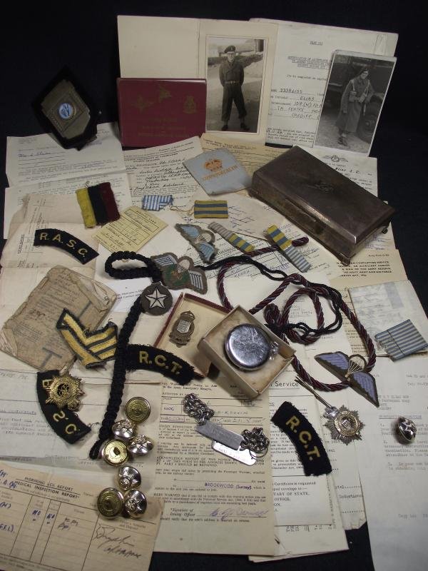 A small grouping i recently purchased from the family of SGT L.T.Elias who served in Korea during the Emergency, part of his National Service, in the RAOC. Quite a bit of the grouping relates to his service in the 144 Parachute Field AVR including his insignia, presentation cigarette box, plaque and parachute descents log book that shows Elias did 36 jumps; he qualified in 1967. Elias was born in 1933 Cardiff area, broken watch must have been a present as it has his details to the back and a 1945 date and was sent to Korea in 1953 coming out of his National Service in 1957. He also qualified as an assistant jump instructor in 1971, cert found in the group. Anyway there is too much for me to explain everything but im sure you will find this little group of interest, especially if your into local items.