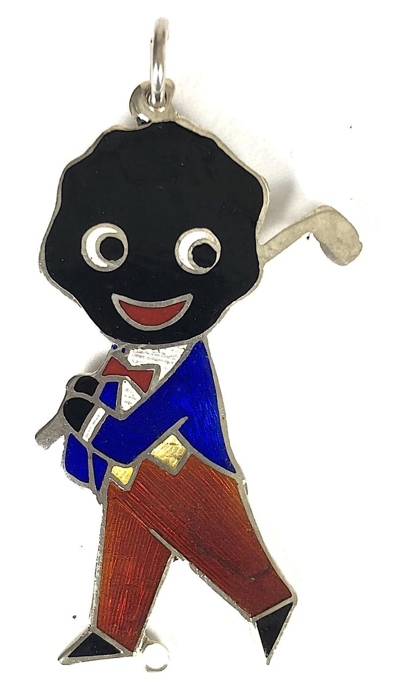 A rare original short-lived circa 1981 period 'Robertson's Golly Action Golf Player pendant badge'; the reverse impressed in a shield '1981 925 Sterling'. Very good condition, no stress marks or damage to the enamel, very minor service wear.Height with ring approx 46mm.
