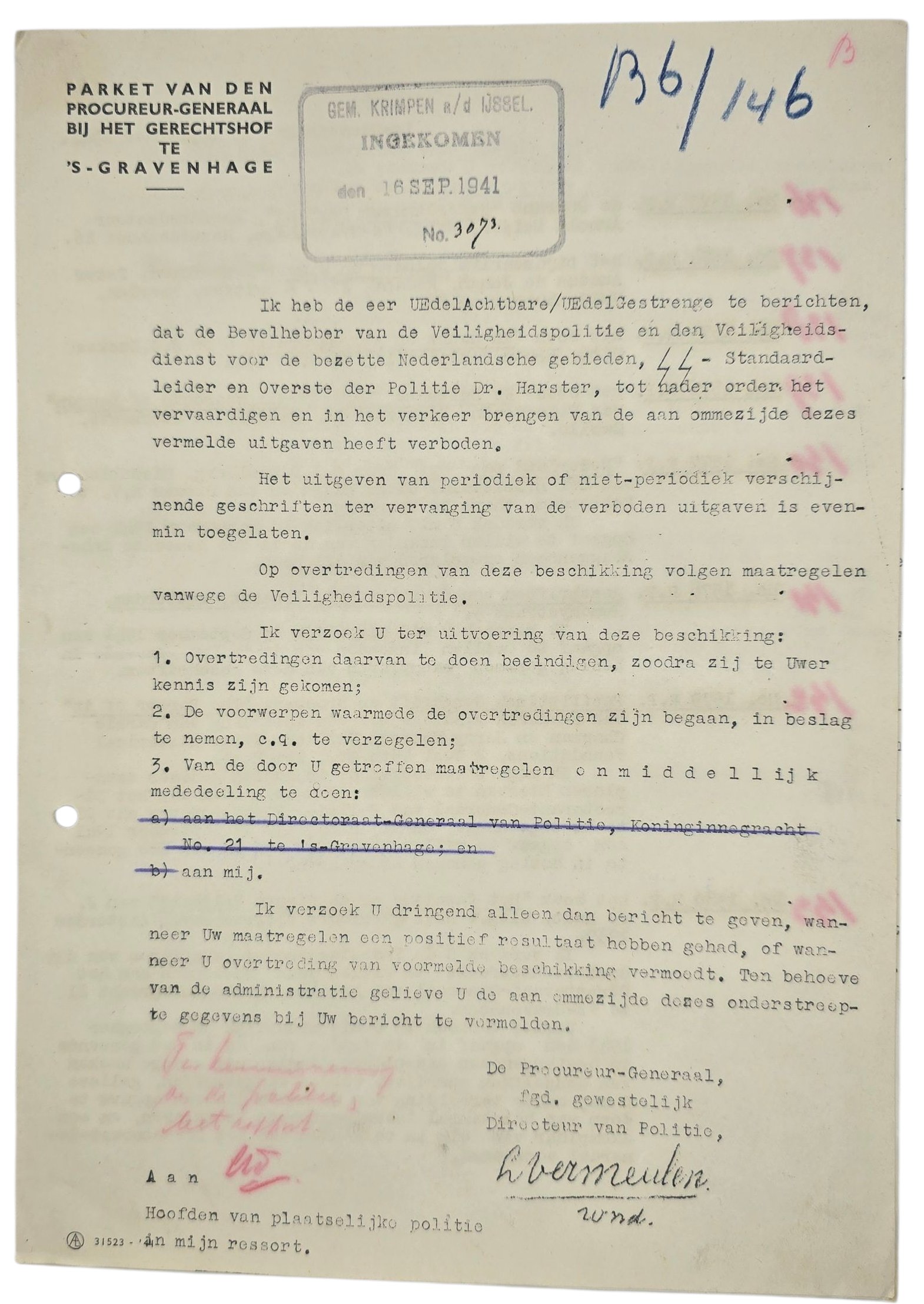 Original WW2 Dutch Document - List of illegal publications, forbidden by SS Police Dr. Harster, Krimpen a/d IJssel (1941)Origineel Wo2 Nederlands Document - Lijst van verboden publicaties en uitgevers, door SS Politie Dr. Harster, Krimpen a/d IJssel (1941)