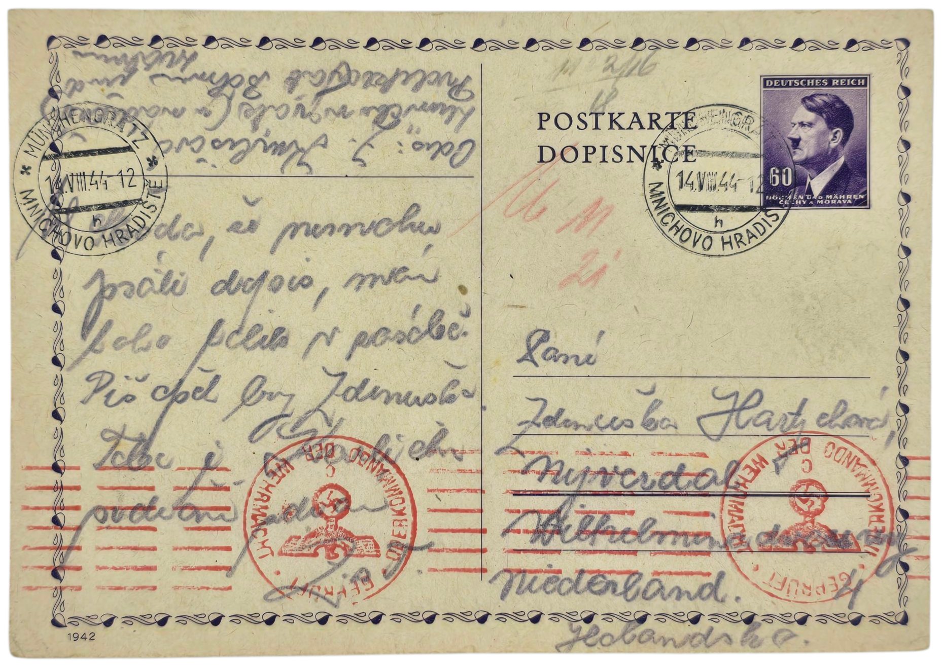 Original WW2 Dutch Document - Letter Munchengratz Tsjechoslowakia to Nijverdal, Holland (1944)